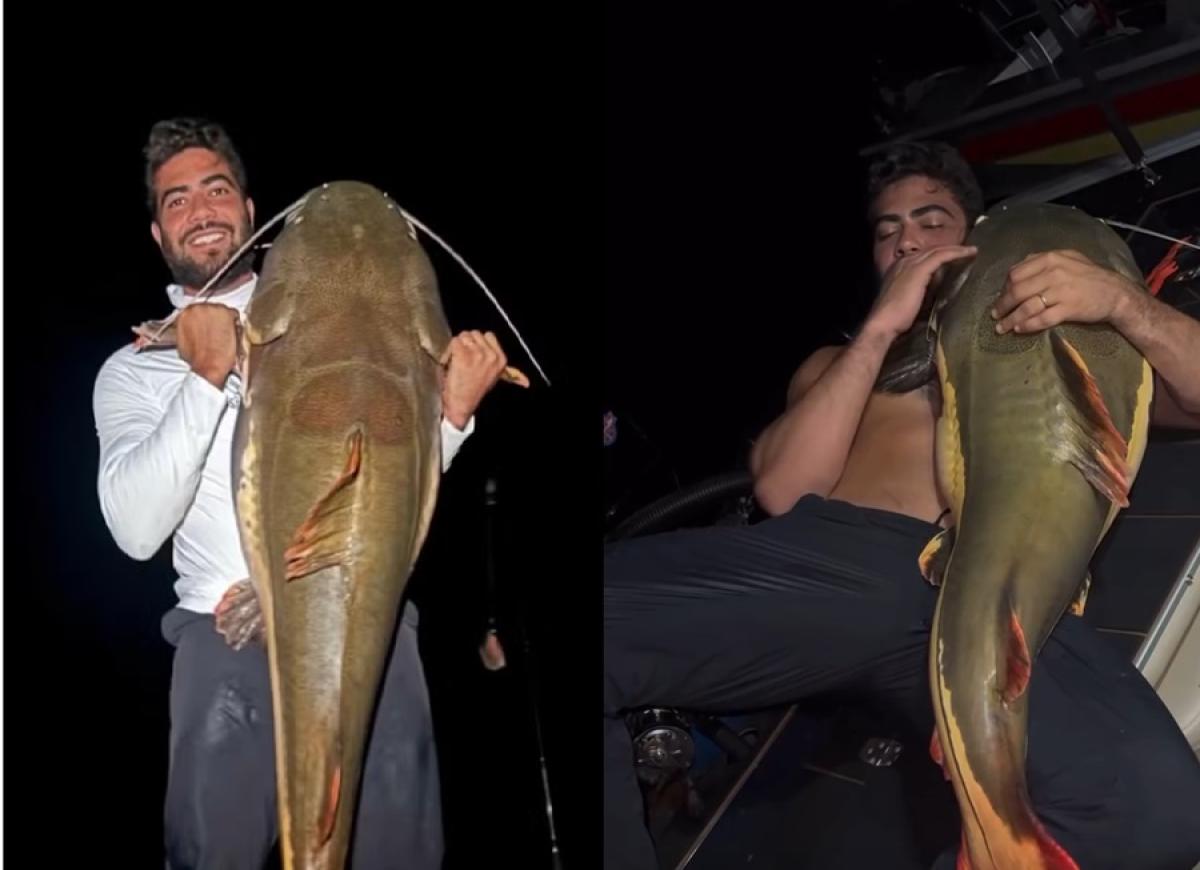 Em um vídeo compartilhado nas redes sociais, o artista aparece exibindo um peixe gigante, que ele pescou no rio Teles Pires, em Apiacás.