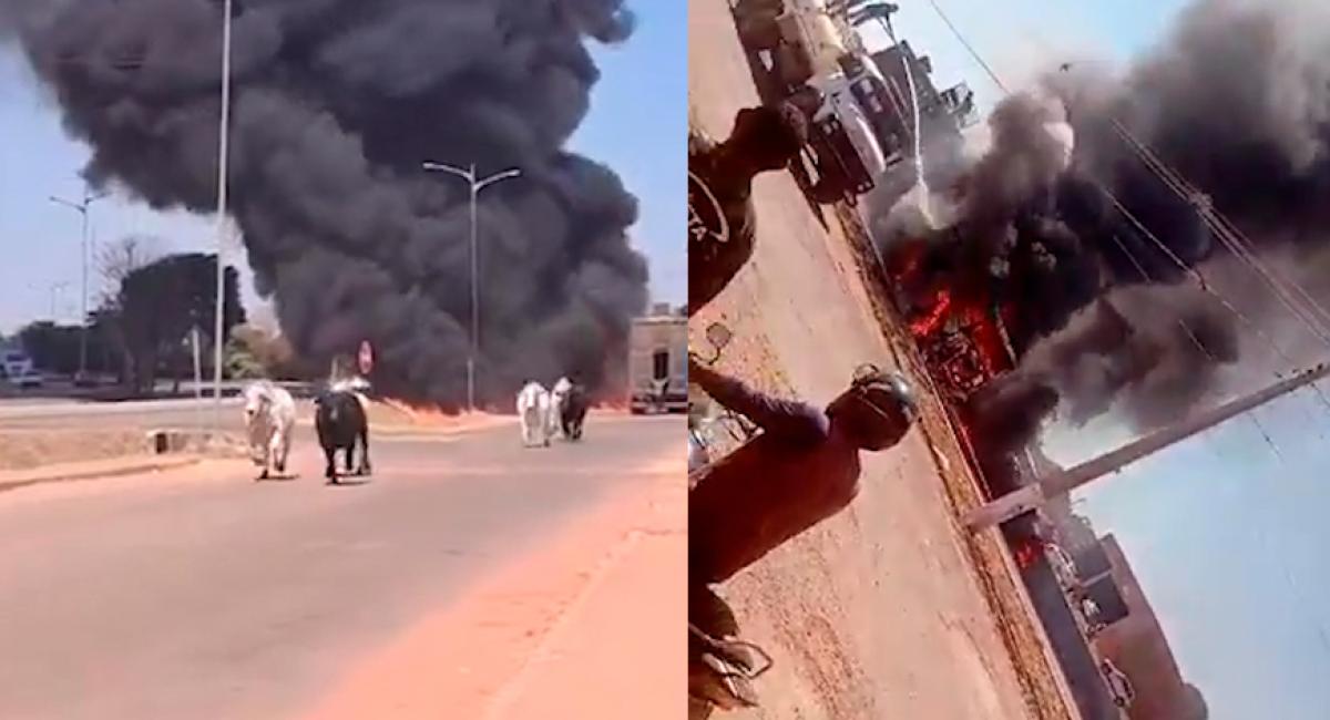 Uma carreta carregada com bovinos foi consumida por um incêndio na manhã desta quinta-feira (25), na avenida São Luiz, no bairro Vitória Régia, em Cáceres (217 km de Cuiabá). Vídeos que circulam nas redes sociais mostram o veículo totalmente atingido pelas chamas, enquanto os animais correm pela via para fugir do fogo e da fumaça densa que saía do veículo.