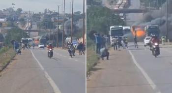 Câmeras de segurança registraram que o jovem que estava na garupa não abaixou o suficiente e teve ferimentos graves na cabeça. Ele morreu na hora.
