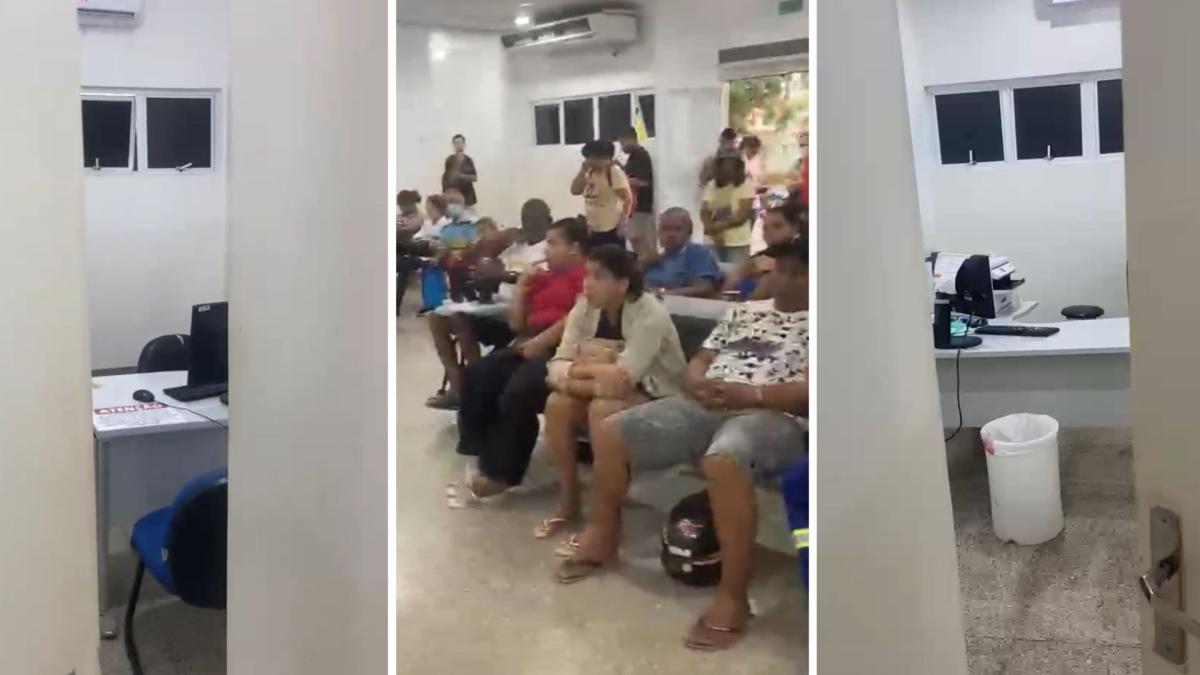 A denunciante também reclama da falta de estrutura básica, como cadeiras e água. Segundo ela, há pessoas aguardando desde as 7h da manhã e o tempo de espera já passava de cinco horas. “Não tem cadeira, não tem água digna. Tá crítico o atendimento aqui. A gente tá com dor. Tem que ter organização. Cadê os médicos? Três salas desocupadas e duas atendendo pacientes classificados como amarelo”, diz.