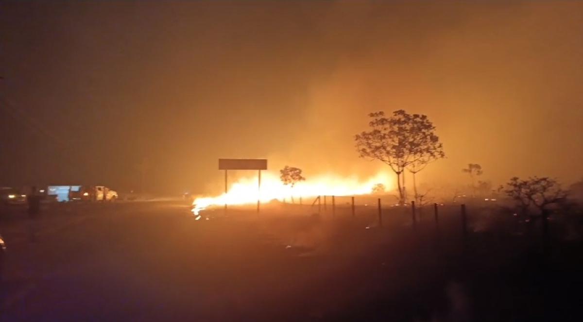 Moradores do Vale da Benção estão sofrendo com o incêndio de alta proporção que atingiu a vegetação na tarde de domingo (8), em Chapada dos Guimarães (67 km ao norte de Cuiabá).