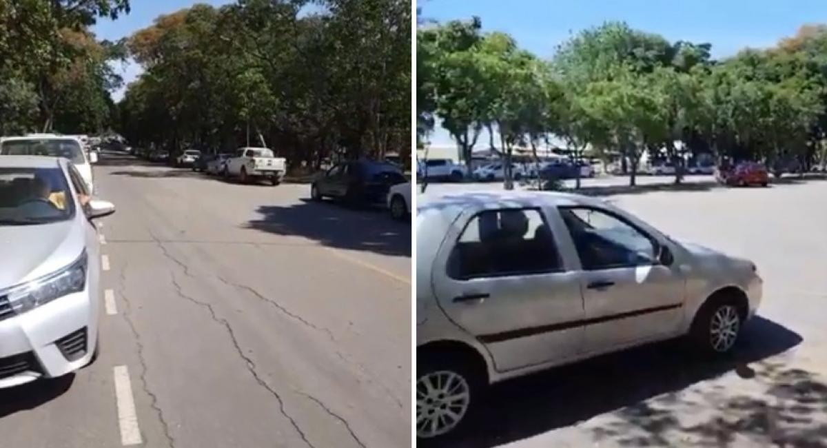 "Nós estamos aqui na Universidade Federal de Mato Grosso, para fazer a nossa vacinação. Olha o tanto de idosos esperando na fila, tem mais de 200 carros”, relata uma mulher, enquanto filma os veículos.