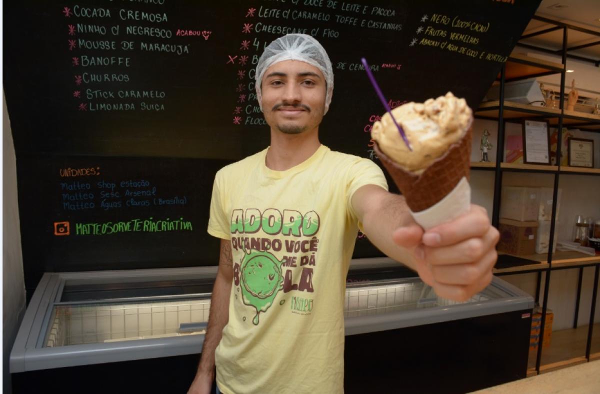 A movimentação de clientes nas sorveterias de Mato Grosso ganha impulso a partir de julho, durante as férias escolares, que coincide com o inverno seco e temperaturas em escalada. De agosto a outubro, consideramos a alta temporada cuiabana para venda de sorvete, destaca Allan Dias Velasque, proprietário da Matteo Gelato Criativo.
