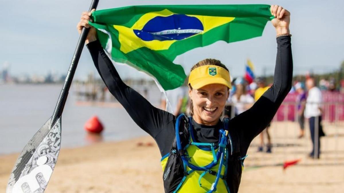 A primeira a triunfar nesta sexta-feira (2) no mar agitado de Lima foi Lena Guimarães, tricampeã nacional no surfe stand-up paddle (SUP), modalidade que integra o surfe clássico com o uso de remos. Ela deixou para trás a norte-americana a Candice Appleby, campeã quatro vezes da Corrida SUP Race, uma das principais disputas do mundo na modalidade, que ficou com a medalha de prata. A porto-riquenha Mariecamen Rivera, chegou em terceiro lugar e ficou com o bronze.