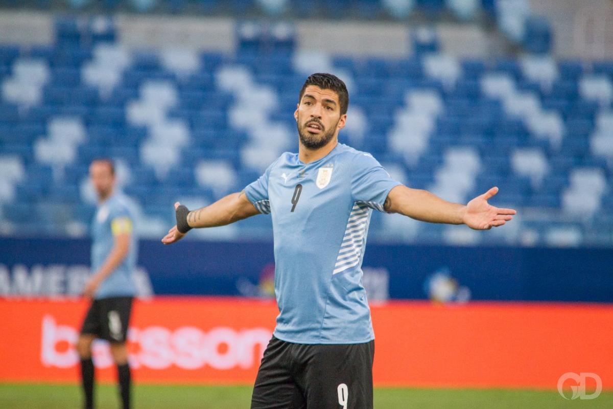 Em bobeira da zaga boliviana, De La Cruz tomou a frente, roubou a bola e acionou Suárez, o atacante gingou e foi derrubado perto da área.