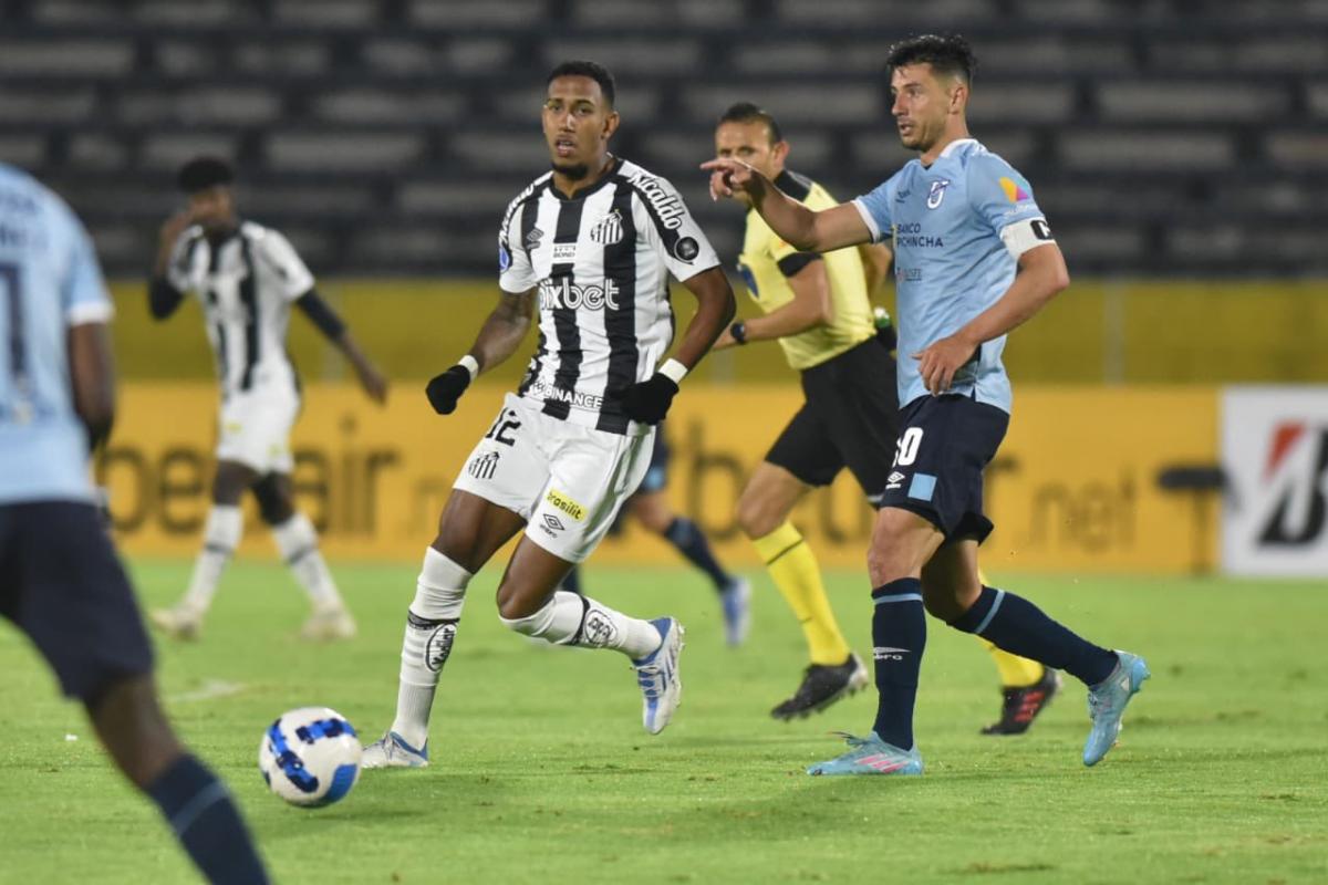 Fabián Bustos optou por escalar uma equipe reserva, preocupado com a maratona de jogos que o Santos vem fazendo. E o time não conseguiu andar nos primeiros 20 minutos. Com a bola correndo mais rápido do que estão acostumados por causa da altitude de Quito, os santistas erravam muitos passes, o que dificultava a construção de jogadas.
