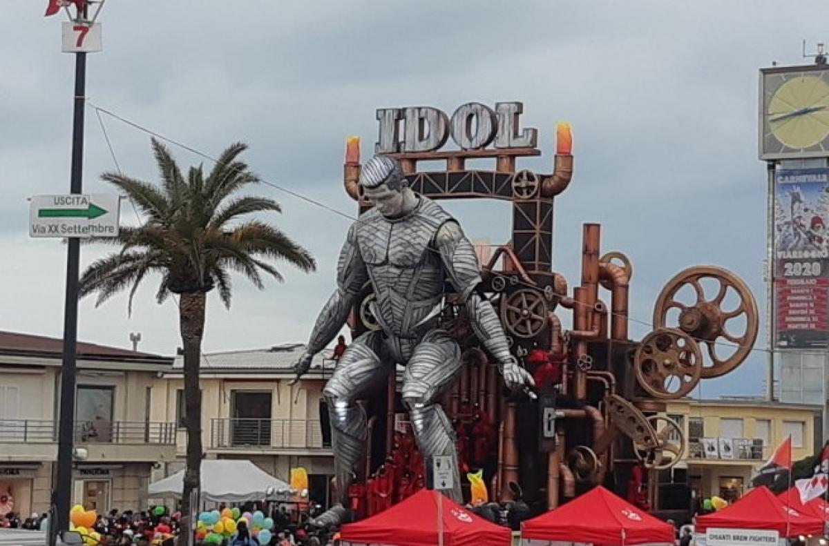 Em Viareggio, os carros alegóricos são usados fazer protestos políticos ou defender causas. Mas, Cristiano foi homenageado como ídolo, palavra escrita na alegoria.