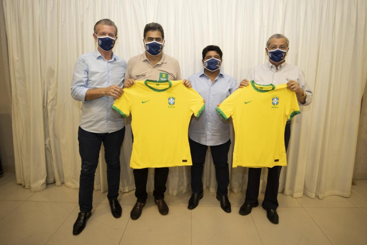 Ednaldo Rodrigues e as autoridades locais acompanharão a decisão da Supercopa 2022 na Arena Pantanal neste domingo. Mais cedo, o presidente da CBF esteve no palco da partida e conferiu os últimos ajustes no estádio.