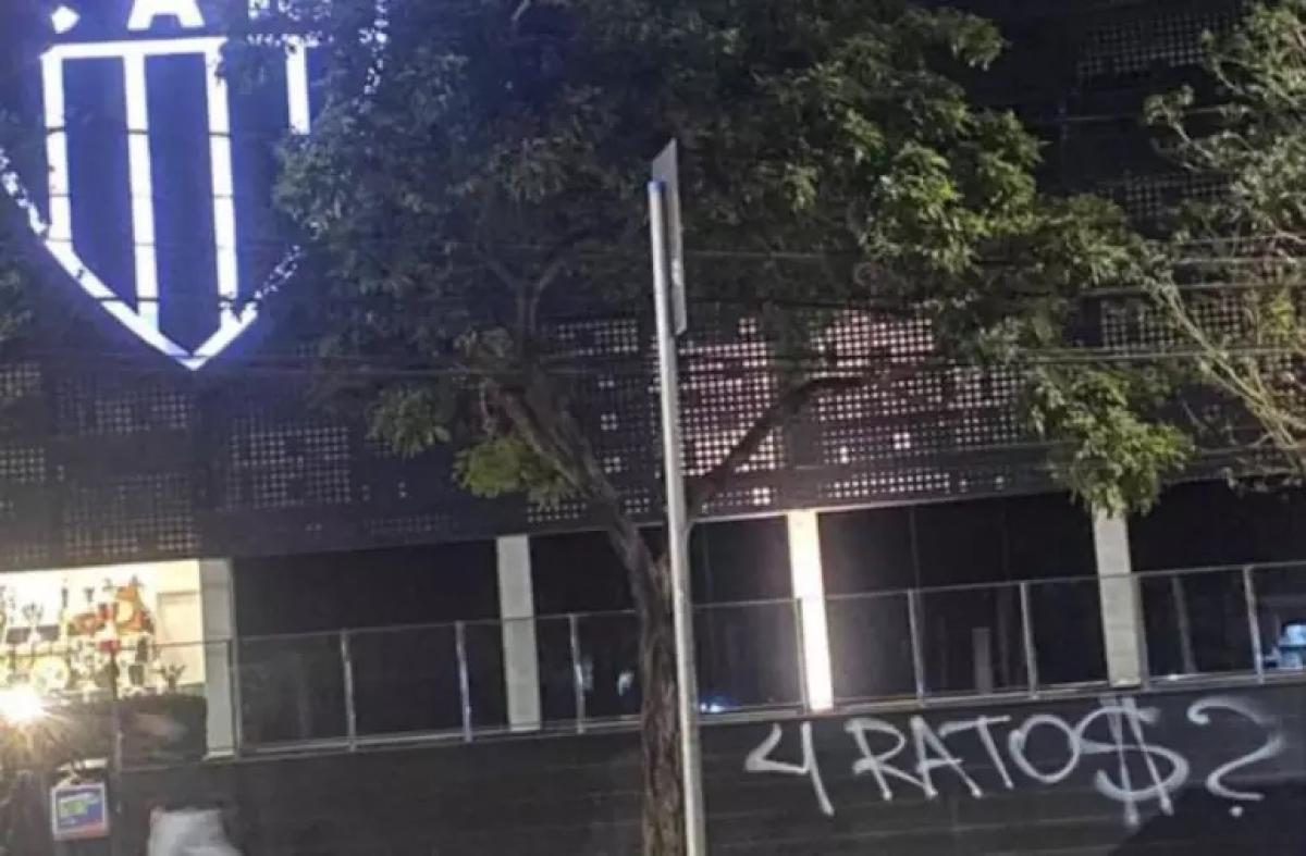 A perda do título da Copa Libertadores continua causando estragos ao Atlético-MG. A sede do clube, localizada no bairro de Lourdes, em Belo Horizonte, amanheceu pichada na manhã desta segunda-feira. O protesto faz uma alusão aos quatro empresários que são donos da SAF alvinegra. O muro recebeu a inscrição “4 rato$”.