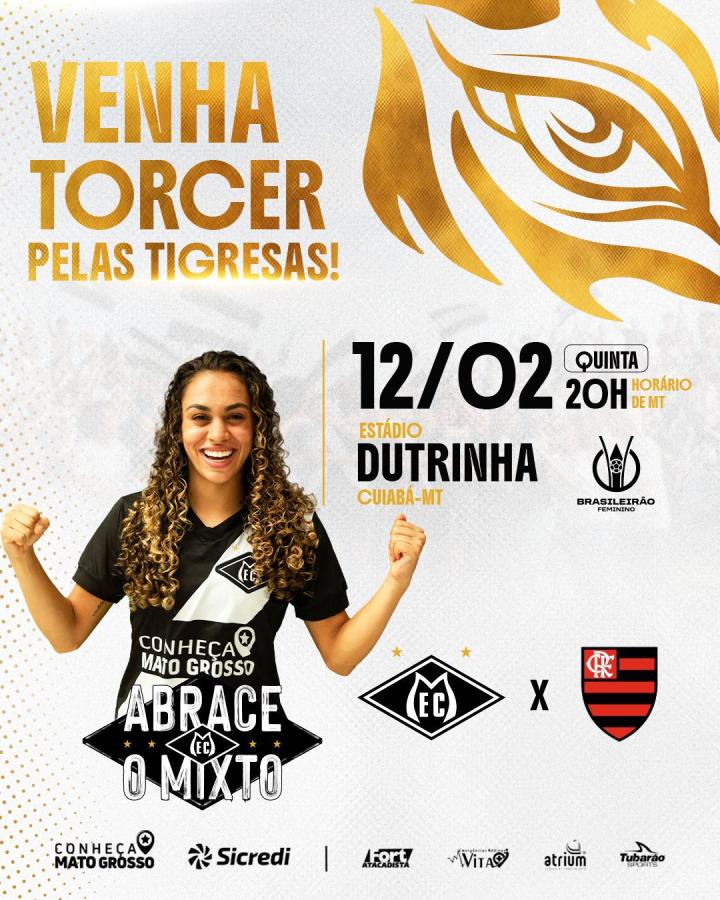 As Tigresas do Mixto encaram, nesta quinta-feira (12), o Flamengo, pela abertura do Brasileirão Feminino Série A1. A partida acontece no Dutrinha, às 20h (horário de Mato Grosso).