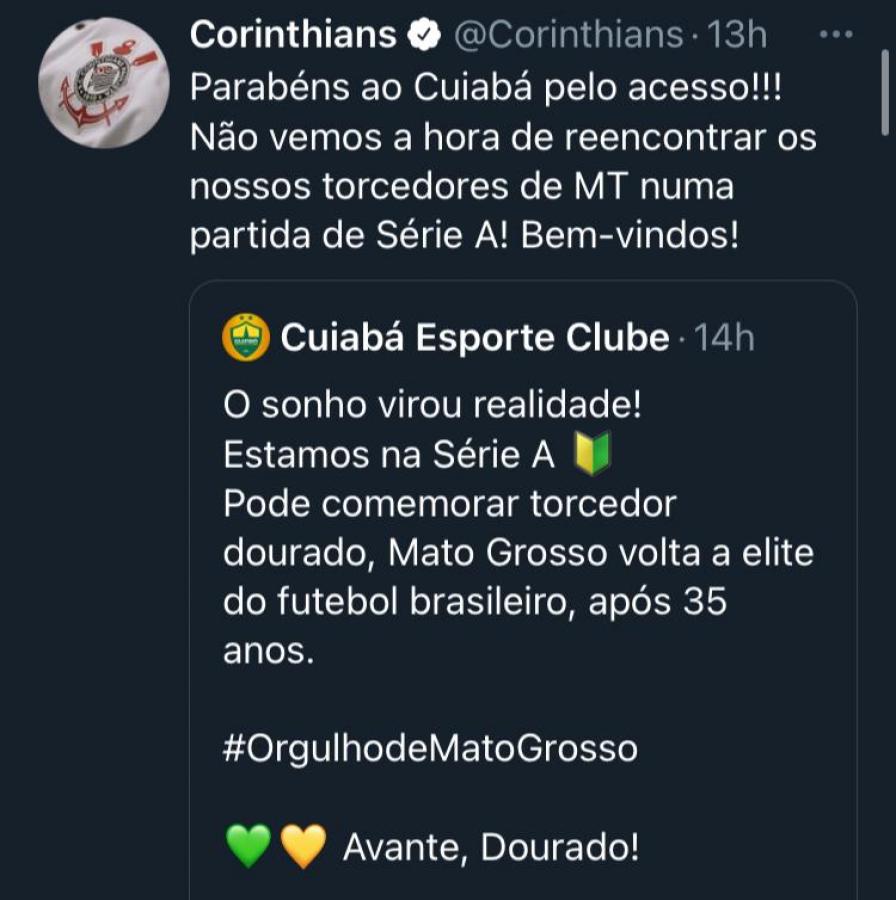 Com a ida para a Séria A, o Cuiabá também ganhou forças nas redes sociais. Em menos de 24 horas, o clube soma mais de 14 mil novos seguidores no perfil do Instagram.