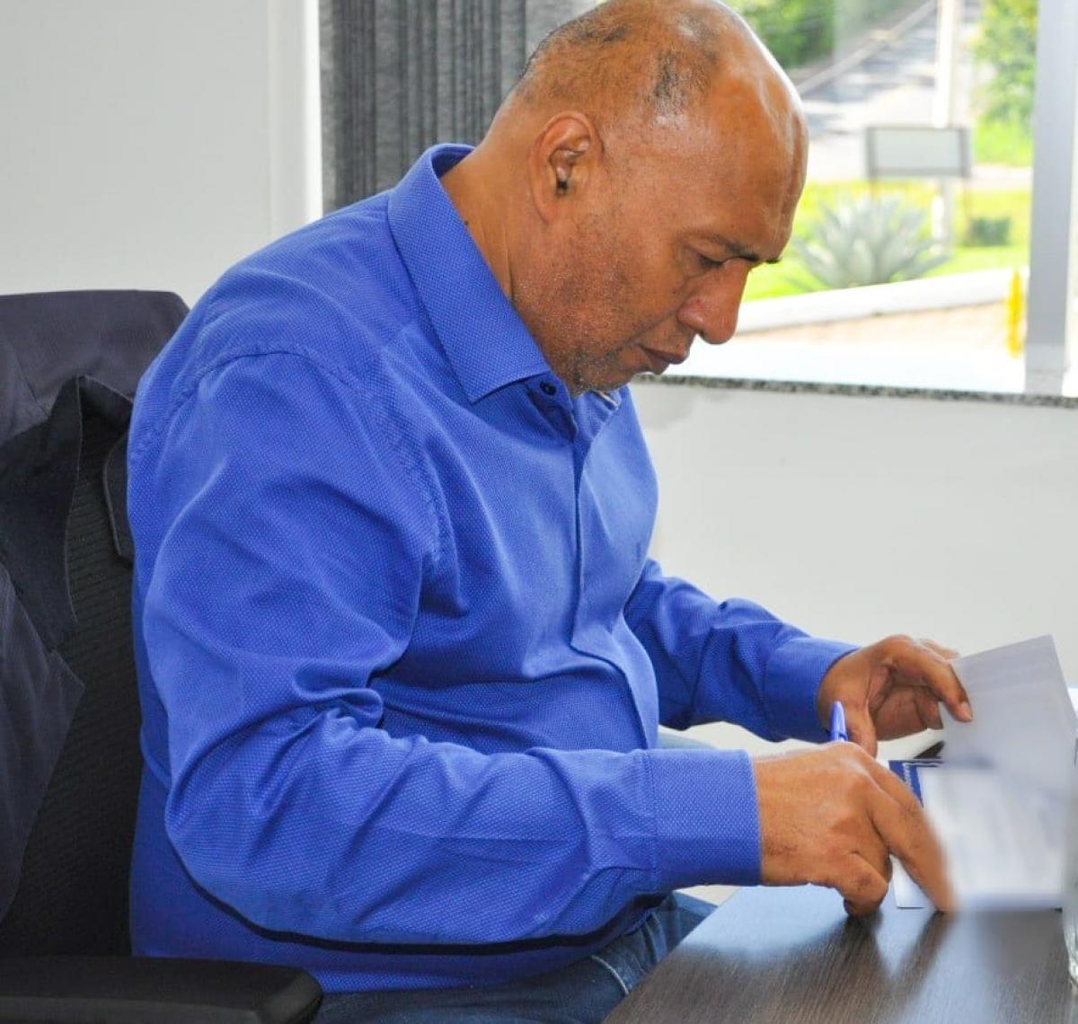 Diretor jurídico do CRECI/MT, Alex Vieira Passos, oficializando a secretária municipal de Saúde, Ozenira Félix