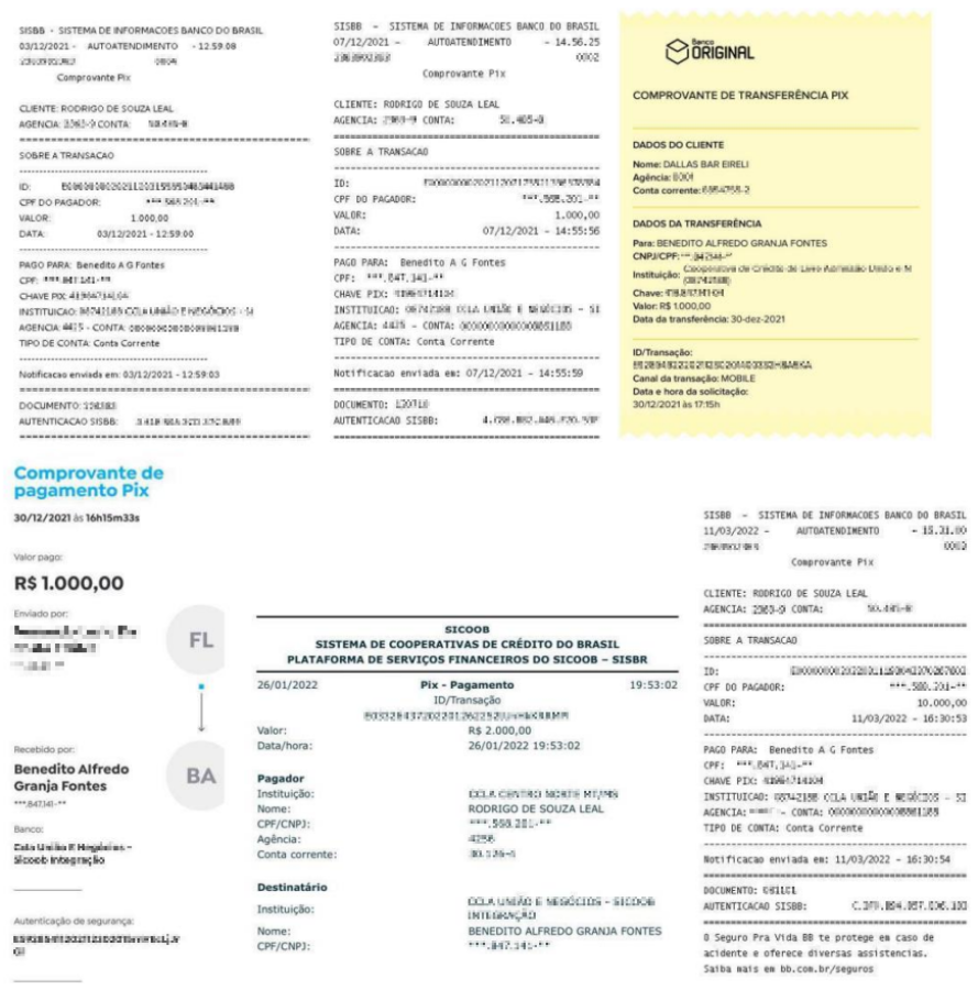 As investigações ainda encontraram diversos comprovantes de transferências bancárias de Rodrigo para a conta de Benedito Alfredo.