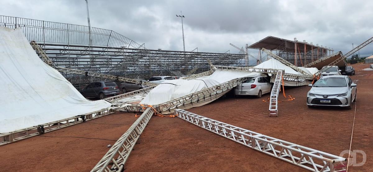 “O evento não será cancelado. Vamos fazer uma avaliação rápida da arquibancada. Acreditamos que tudo vai dar certo. O que danificou foi a estrutura do teto, que acabou tombando para trás com a rajada de vento”, explicou.