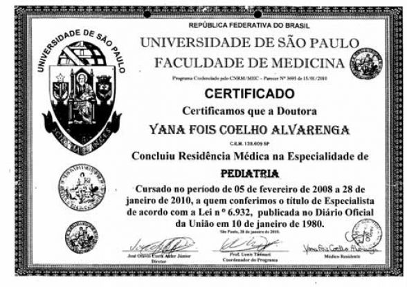 Segundo a denúncia, protocolada na Vara Única da Comarca de Aripuanã (1.002 km a noroeste da Capital), entre fevereiro e maio de 2015, Yana entregou um certificado falso de conclusão de residência médica na especialidade de pediatria no Hospital Municipal. No documento, ela dizia que tinha feito o curso na Faculdade de Medicina da Universidade de São Paulo (USP).