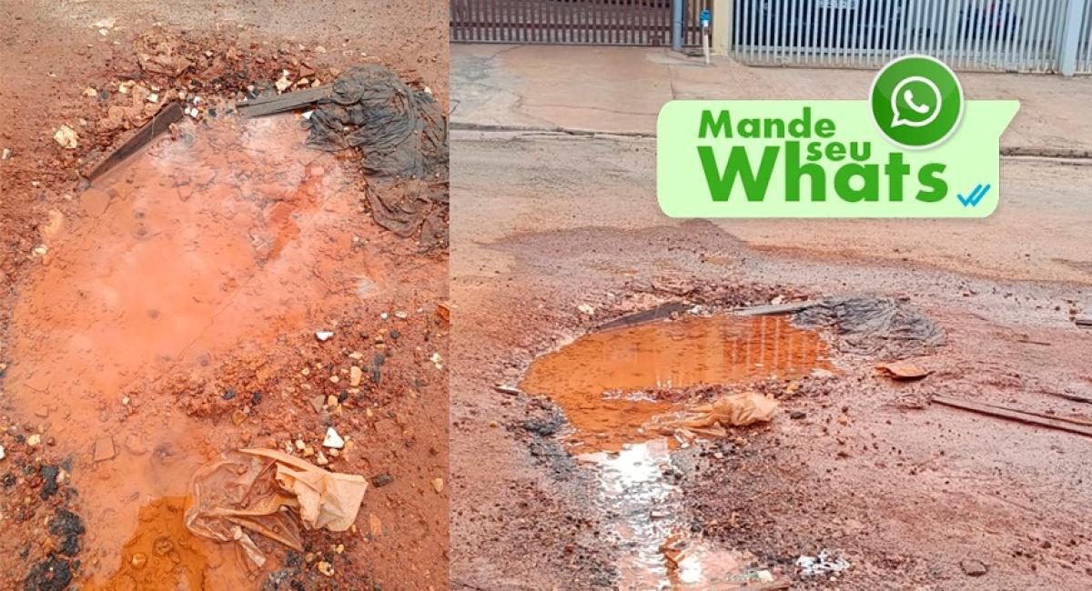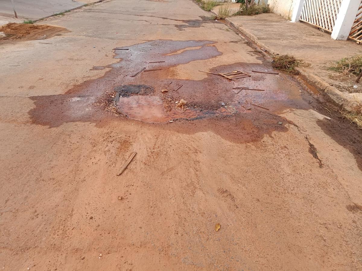 Ele contou que tem dificuldade para colocar seu veículo na garagem da residência, pois o vazamento é em frente à casa onde mora.