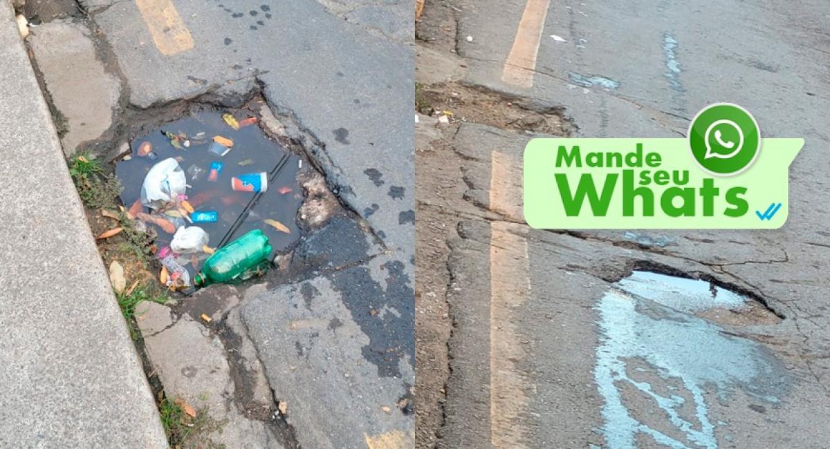 Nos dias chuvosos a água acumula no buraco de maior profundidade, juntando lixo e outros itens descartados no local. Na unidade também não há lixeiras, fazendo com que os materiais sejam deixados no próprio chão e no meio fio.