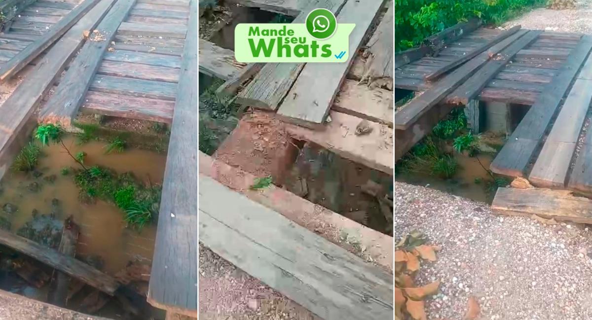 Um vídeo gravado do local mostra a situação da ponte. As tábuas, que já estavam parcialmente danificadas, caíram da estrutura após a passagem de um caminhão carregado.