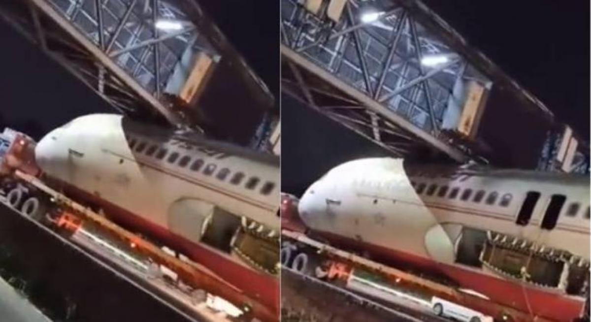 #WATCH A shocking visual of an @airindiain (retired) ✈️ aircraft collided a foot over bridge on the Delhi-Gurugram highway a few days back.#Avgeeks