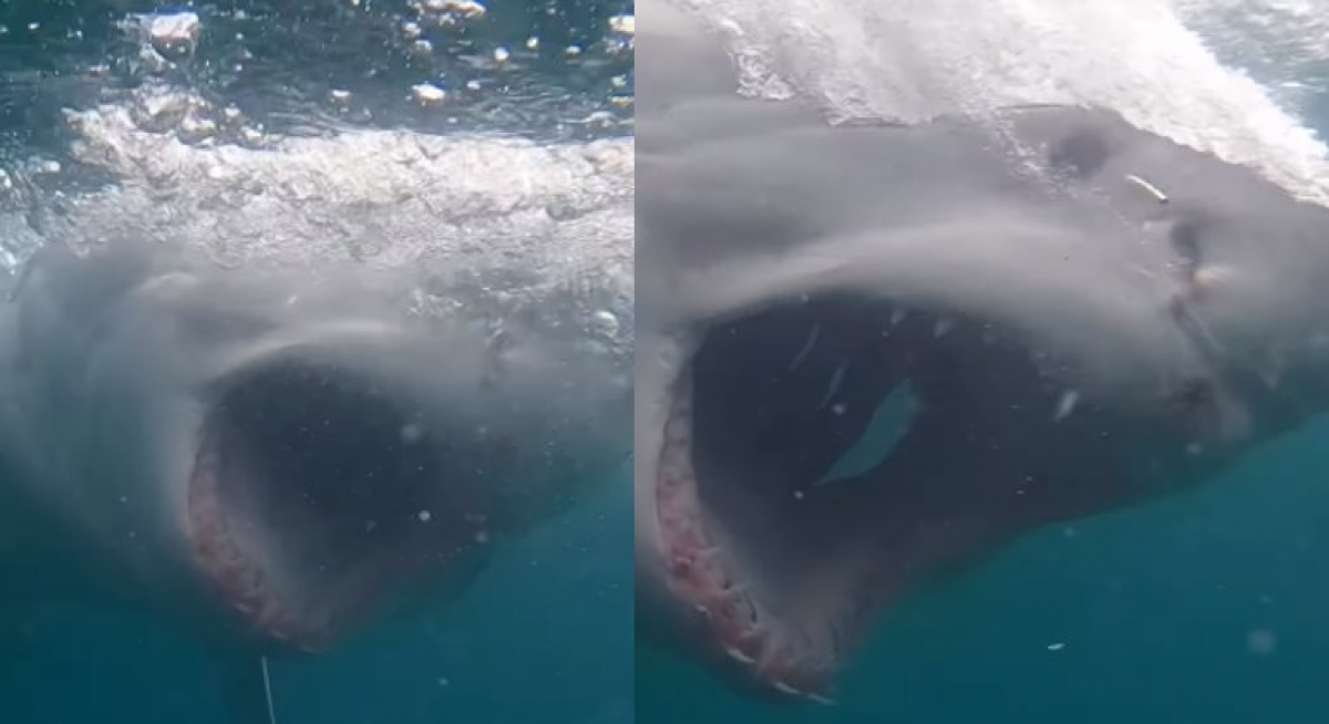 A cena inusitada foi registrada por um mergulhador da White Shark Ocean, uma companhia de conservação de tubarões na África do Sul, e postada no Instagram. Entre outros tantos vídeos assustadores do animal, esse chama atenção.