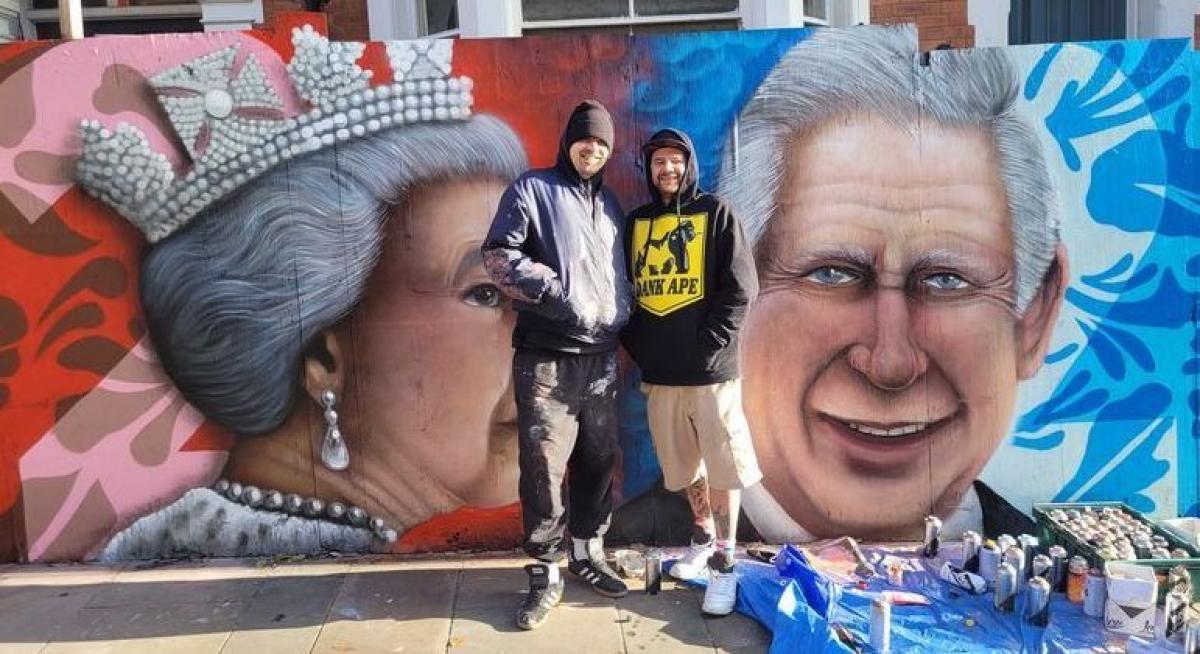 A arte de rua, erguida em painéis no centro da cidade de Northampton, foi encomendada pelo conselho para marcar o início do reinado de Charles 3º após a morte da rainha. O mural de cores vivas apresenta imagens de ambos os monarcas.