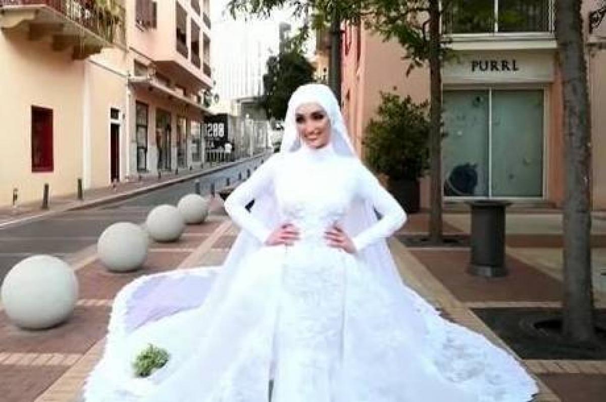 A noiva Israa Seblani posava sorrindo em seu vestido de noiva em uma praça no centro de Beirute após seu casamento no Le Gray Hotel, quando a explosão de terça-feira (4) na zona portuária da capital libanesa acabou com tudo.