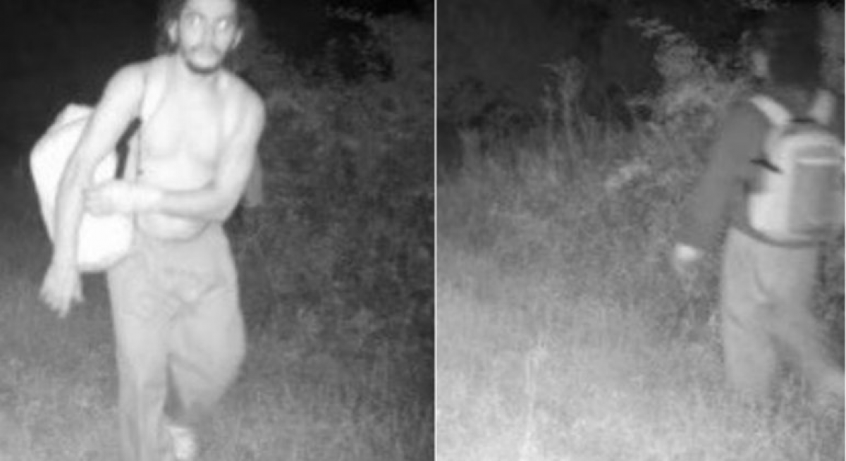As quatro fotos foram feitas em uma trilha e mostram que o foragido está carregando uma mochila e usando casaco e calça comprida.