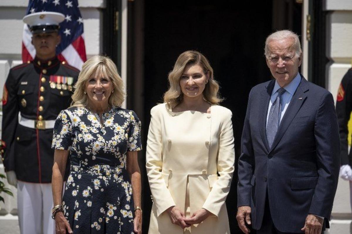 Olena Zelenska foi recebida na Casa Branca na última terça-feira (20) pelo presidente dos EUA, Joe Biden, e pela primeira-dama Jill Biden.