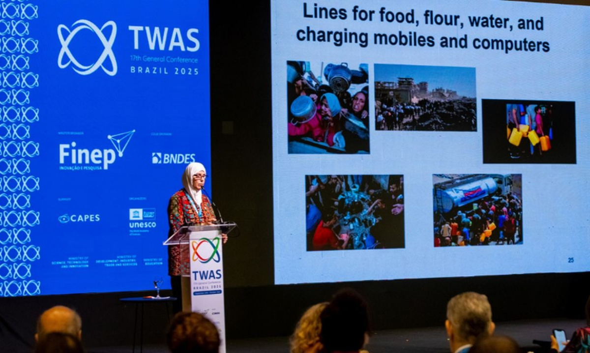 Em meio à crise humanitária e ao cenário de destruição em Gaza, professores universitários ainda persistem, gravando aulas para que os alunos assistam de maneira remota e deixando conteúdos anotados para eles em pequenas bibliotecas locais. É o que revelou a professora titular dos departamentos de Engenharia Elétrica e Sistemas Inteligentes da Universidade Islâmica de Gaza, Hala El-Khoondar, em uma palestra durante a 17ª Conferência Geral da Academia Mundial de Ciências, que terminou na quinta-feira (2), no Rio de Janeiro.