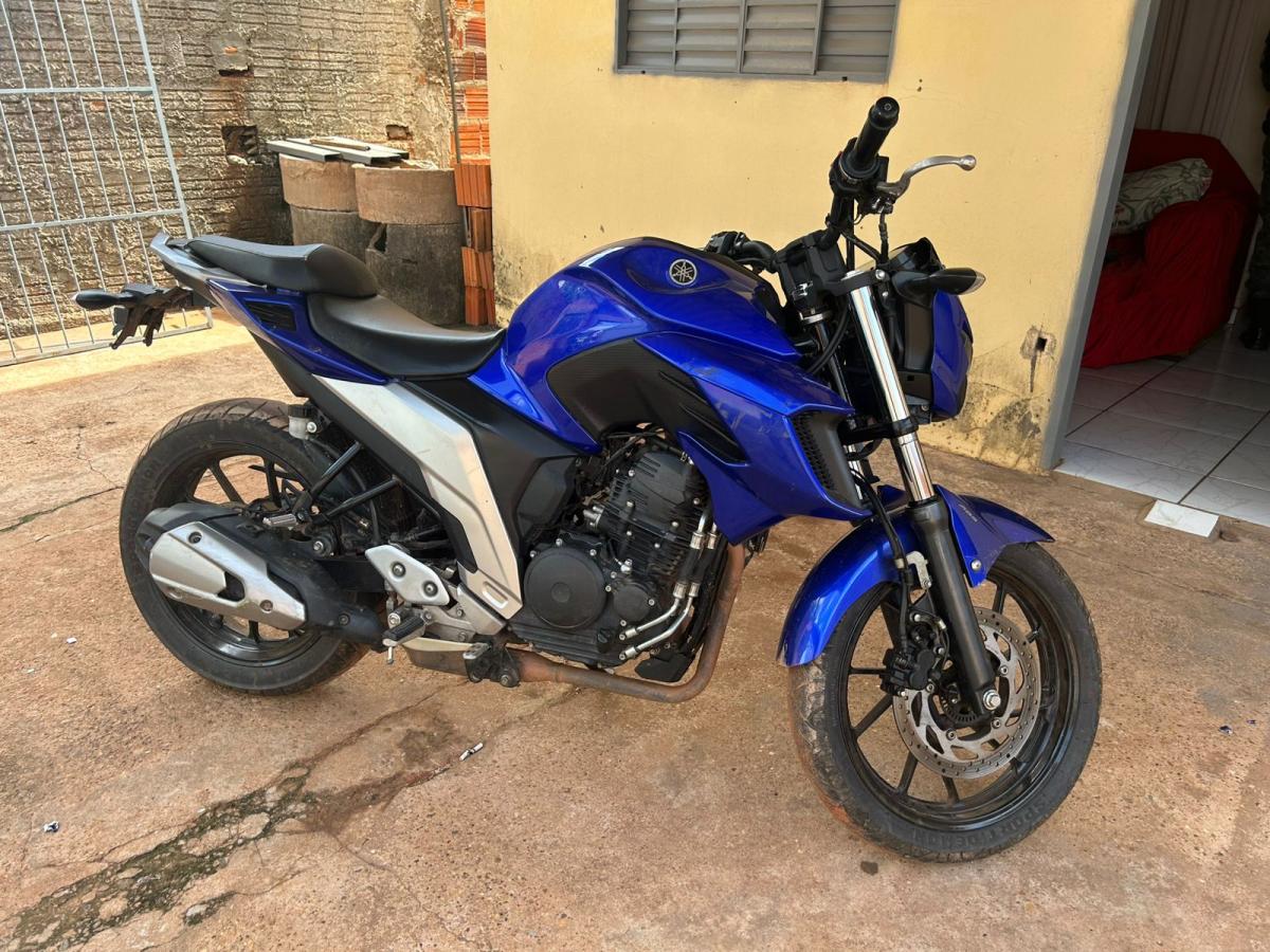 Em determinado momento, os policiais avistaram, pelo portão aberto de uma casa, a moto Yamaha Fazer de cor azul, sem placa. Ao se aproximarem, os militares viram um homem ao lado da casa. Ao perceber a presença da PM, o suspeito correu para dentro da residência e se trancou.
