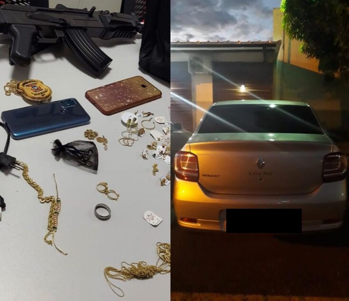Nas casas dos homens, a polícia encontrou 51 tabletes de maconha, uma espingarda, 5 pistolas e munições, além do Renault Logan que havia sido roubado.