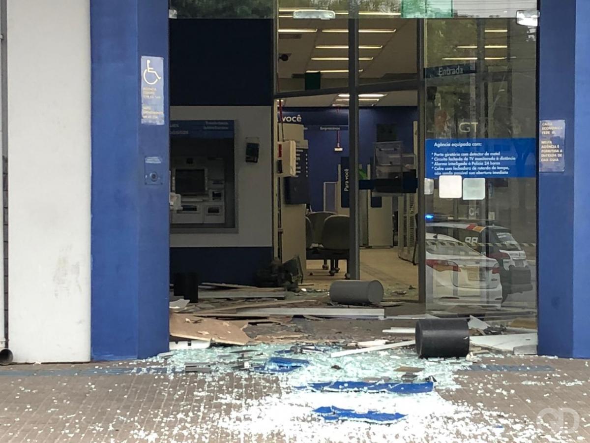 A agência está parcialmente destruída e não há informações sobre valores levados no crime.