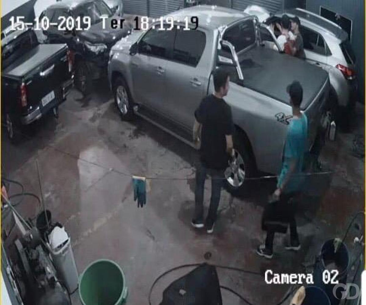 Ele tomou de roubo uma Toyota Hilux, prata com placas QCU-4548, que pertence a um cliente. Além disso, pegou ao menos 7 chaves dos veículos que estavam no local.