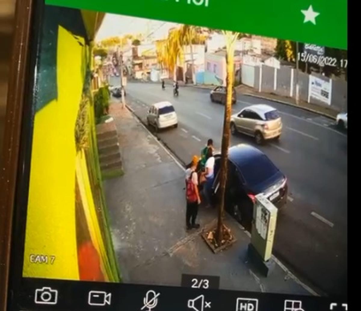 , vítima estava parada, sentada dentro de um Corolla preto na lateral de uma floricultura. Os assaltantes se aproximam, percebem que ela está com a porta aberta – mesmo dentro do carro - e fazem a abordagem.