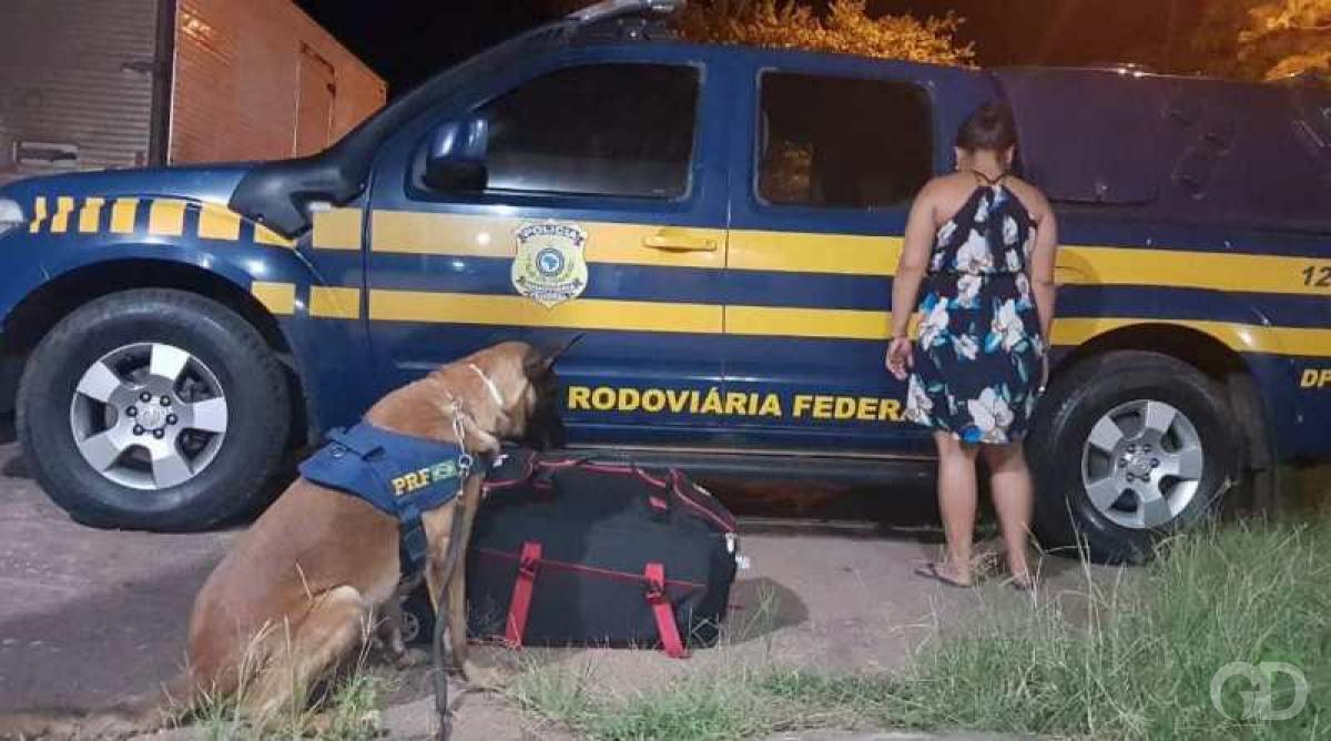 A droga foi localizada no fundo falso de uma mala, no bagageiro do veículo, pelos cães farejadores. Na bagagem, a indicação era que todo material pertenceia à passageira da poltrona 30. A suspeita mostrou-se incomodada com a ação policial, mas acabou confessando que receberia um valor em dinheiro pelo transporte.