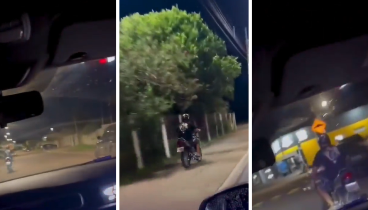 A fuga foi filmada pela equipe policial, o motociclista estava em alta velocidade, colocando pedestres e motoristas em risco. Durante o acompanhamento tático, ele trafegou pela contramão na avenida João Goulart, nas proximidades do Parque das Araras, invadiu a calçada perto da Escola Ledy e avançou vias preferenciais, desrespeitando diversas sinalizações de trânsito.