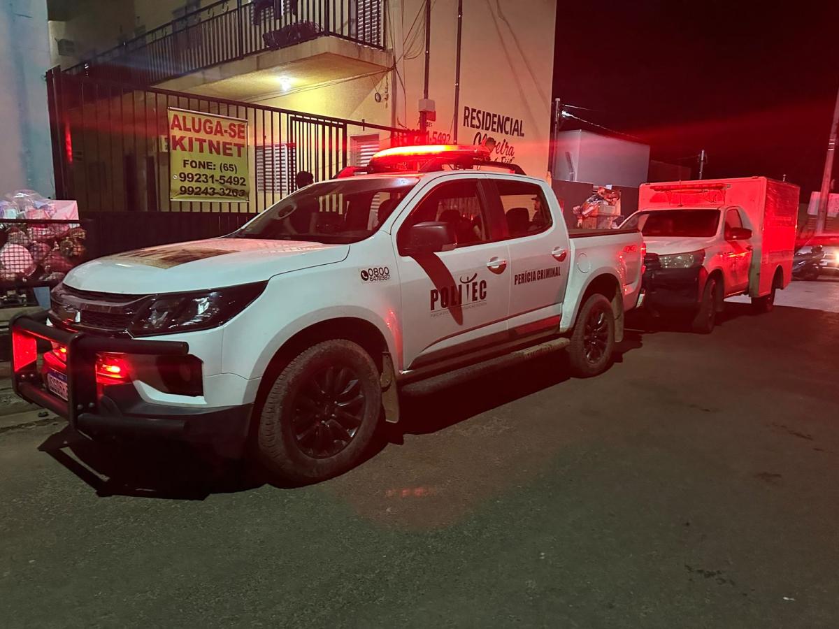 Cena do crime foi isolada para os trabalhos da Polícia Civil e Perícia Oficial (Politec). Suspeito estava trajando rouba vermelha e fugiu em uma motocicleta também vermelha. O caso é investigado.