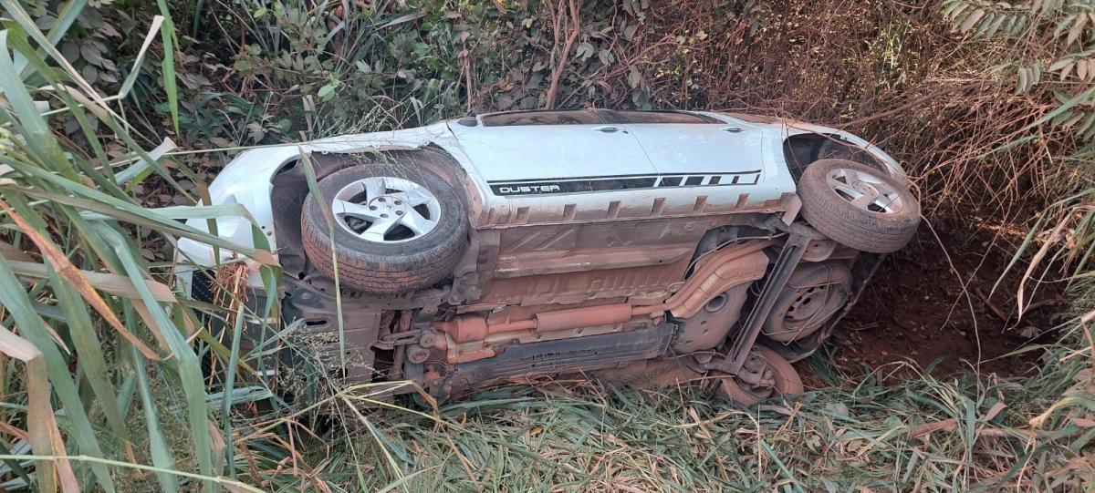 Criminosos acusados de roubo no centro de Cuiabá capotaram veículo durante fuga e abandonaram carro tombado dentro de uma vala, na Estrada da Ponte de Ferro, em Cuiabá. O roubo e foi registrado no início da tarde de sábado (9) e o automóvel achado pouco tempo depois.