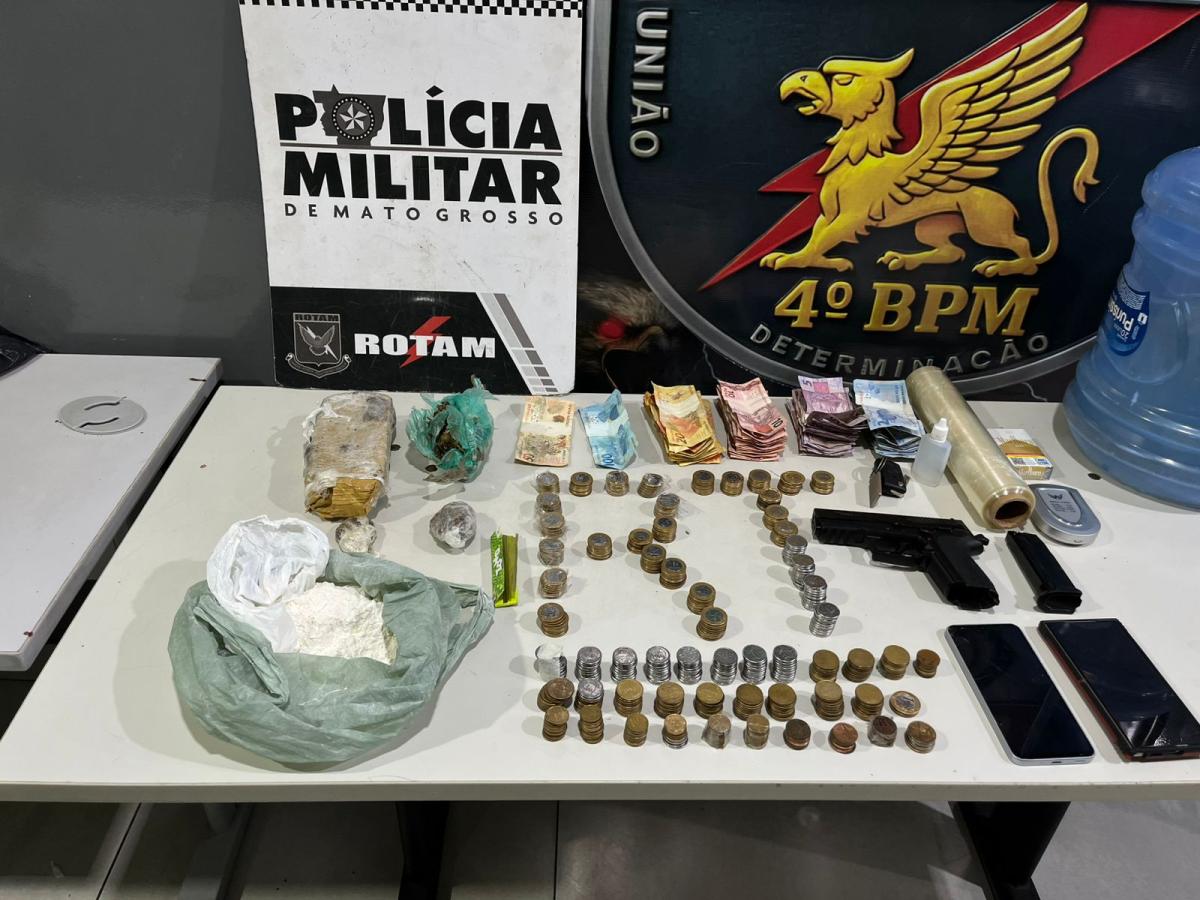 Dois homens de 26 anos foram presos na tarde de quinta-feira (19), durante uma ação da Rotam no bairro Costa Verde, em Cuiabá. A dupla foi flagrada com porções de drogas e dinheiro, e um terceiro suspeito conseguiu fugir.