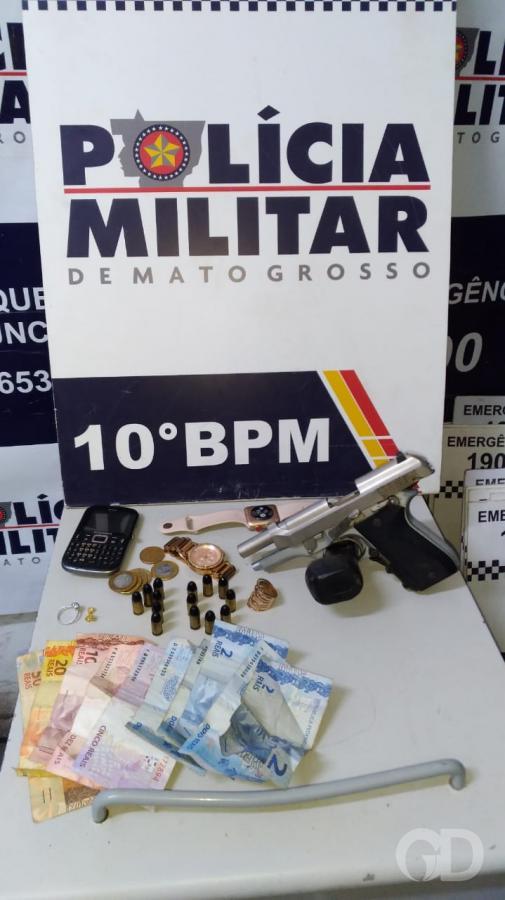 De acordo com as informações, PM foi acionada pelo 190 relatando que uma casa havia sido invadida no bairro Despraiado. No local, os policiais flagraram dois homens armados e pularam o muro da casa.