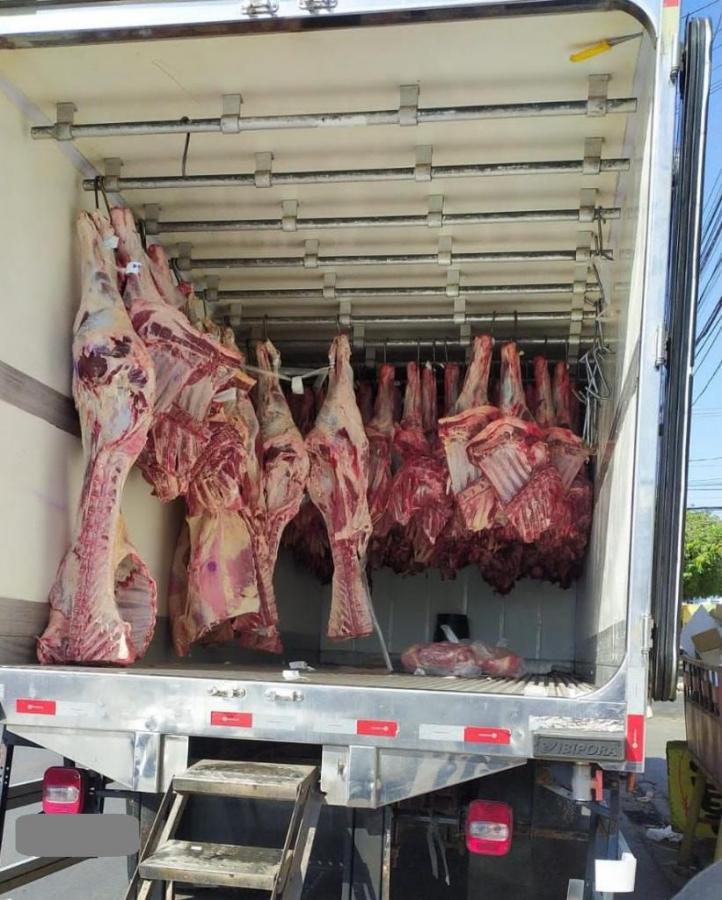 Já na terça-feira, uma equipe de investigação da Delegacia Especializada de Roubos e Furtos (Derf) monitorou a rota de entregas da distribuidora feita por dois funcionários da empresa – o motorista e o ajudante de carga e descarga. Em determinado momento da rota, o veículo parou em um açougue no bairro CPA 2 e no local foram deixados 15 peças de dianteiro de boi. Cada peça equivale a cerca de 35 kg de carne.