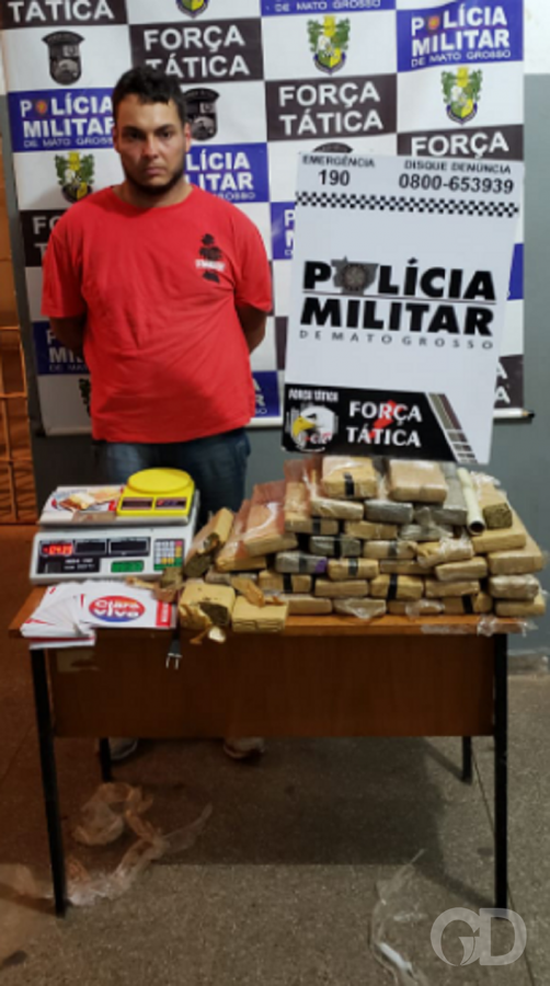 Danilo Rafael Tavares de Oliveira, 29, foi preso na noite de quinta-feira (22) ao ser flagrado com 32 tabletes e 4 porções de maconha no bairro Novo Planalto, em Rondonópolis (215 km ao sul de Cuiabá).
