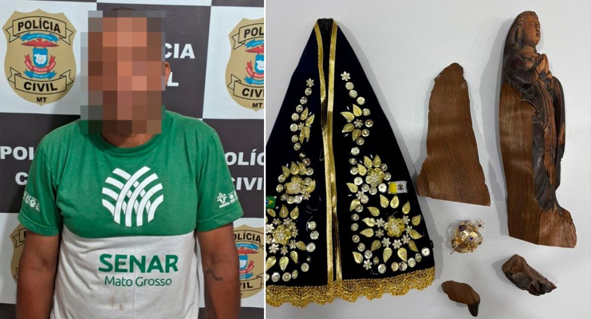 Um homem de 47 anos foi autuado pela Polícia Civil, em Jauru (425 km a oeste de Cuiabá), por violar e danificar uma imagem de Nossa Senhora Aparecida, no último dia 7 de março, com um machado.
