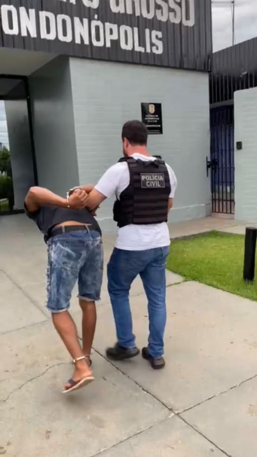 Foi dada voz de prisão ao suspeito, que foi conduzido à 1ª Delegacia de Polícia de Rondonópolis para a adoção das medidas legais cabíveis, permanecendo, em seguida, à disposição da Justiça.
