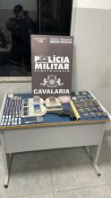Durante perseguição, o motociclista perdeu o controle da moto e caiu com o passageiro. O homem foi detido e o condutor continuou sua fuga a pé em direção a uma região de mata próxima.