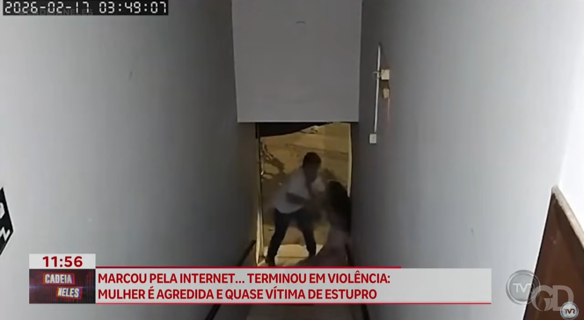 Imagens de câmeras de segurança divulgadas nesta quinta-feira (19) mostram parte das agressões sofridas por uma jovem de 21 anos, durante um encontro em Sorriso (420 km ao Norte). Os vídeos foram exibidos pelo programa Cadeia Neles, da TV Vila Real, e revelam cenas ocorridas dentro do que aparenta ser uma residência ou estabelecimento.