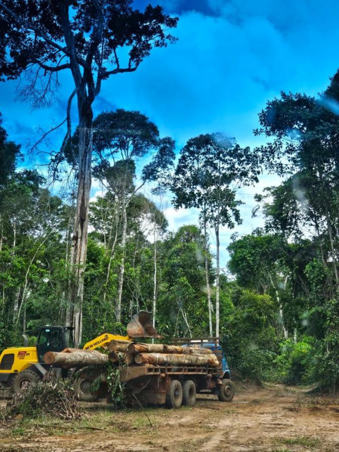 Diante da informação, as equipes foram até a região da Rodovia MT-160 e na estrada vicinal, observaram a entrada na mata com marcas e vestígios recentes de pneus de trator e de caminhão, confirmando as informações de que os suspeitos retornaram para região para retirar as madeiras cortadas.