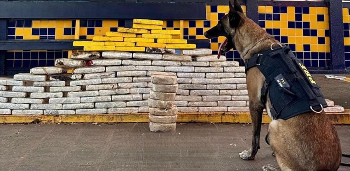 Diante da suspeita, os agentes realizaram vistoria detalhada com apoio do cão farejador K9 Zyon, que indicou a presença de drogas nos estepes do semirreboque. Durante a inspeção, foram encontrados 113 tabletes de substância semelhante ao cloridrato de cocaína, totalizando 115,3 quilos, além de sete tabletes de pasta base de cocaína, com peso de 7,15 quilos.