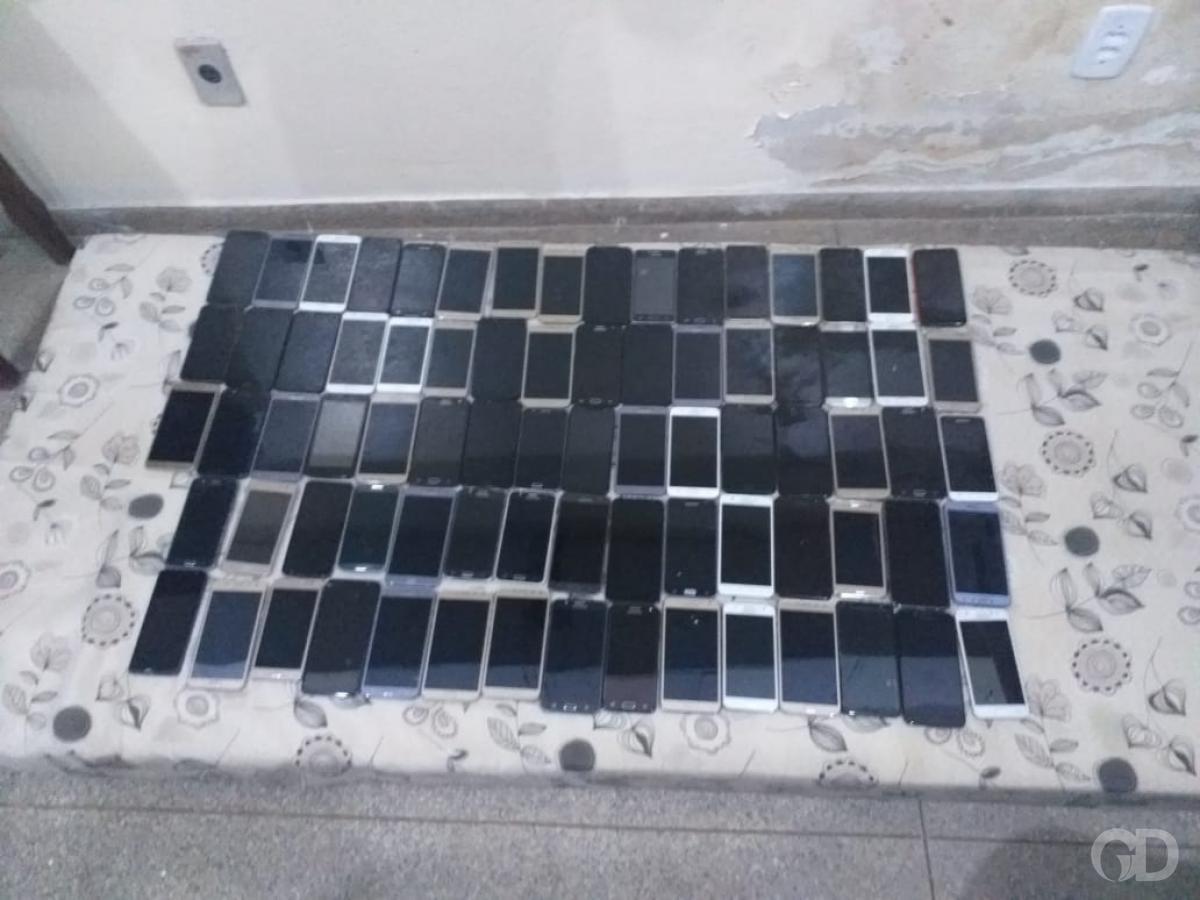 Mais de 70 celulares foram apreendidos na Penitenciária Central do Estado (PCE), na manhã de hoje. Os aparelhos estavam no forro da sala onde é desenvolvido o projeto "Costurando à Liberdade". A turma, com 20 reeducandos, iniciou a capacitação no dia 28 de março.