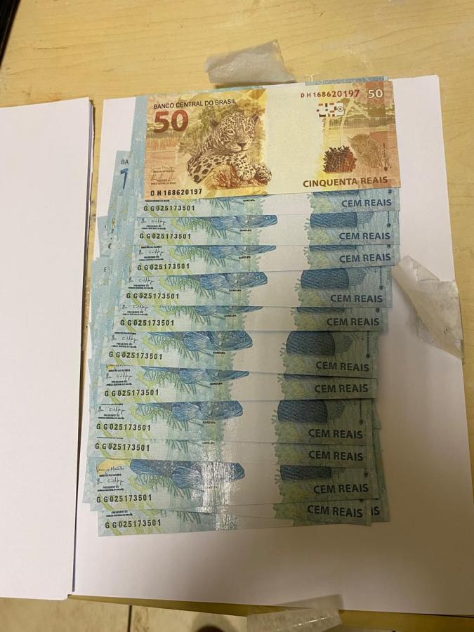 Após acompanharem a entrega, os policiais realizaram abordagem e constataram que o pacote continha cerca de R$ 3 mil em notas falsas.